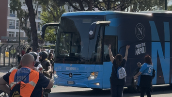 Che gioia tra i tifosi azzurri per l'arrivo del pullman dei partenopei