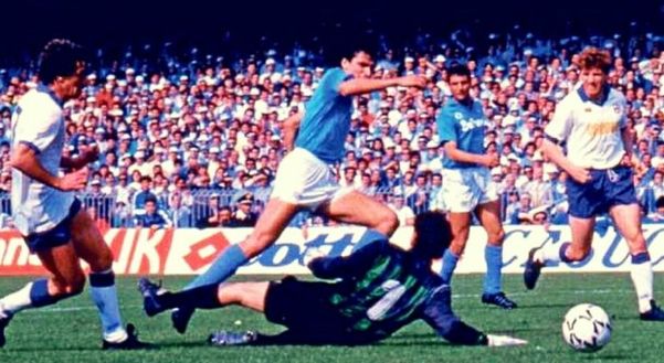 Ed è proprio Roberto Baggio uno dei protagonisti del match del 17 settembre 1989 al San Paolo. Un Napoli-Fiorentina che fu una girandola di emozioni e che segnò, inoltre, il ritorno in città di Diego Armando Maradona, il quale non disputò i primi quattro match della stagione 1989-1990 per alcuni dissidi con la società. El Pibe de Oro però non partì dall'inizio in quel match, infatti Bigon schierò titolare con la numero 10 Massimo Mauro. La prima frazione di gioco fu tutta di marca viola con un Roberto Baggio davvero sugli scudi e autore di una doppietta. La prima rete arrivò al 22° minuto grazie ad una magia di Baggio che prese palla a centrocampo, puntando diritto verso la porta azzurra: saltò due difensori, per poi trovarsi a tu per tu col portiere Giuliani, decidendo di spostarsi la palla con la suola e mettendo a sedere l’estremo difensore e calciare a porta vuota. Il raddoppio arrivò dieci minuti dopo su rigore, da egli stesso procurato: il numero 10 viola entrò in area dribblando Renica che da terra lo stese. Dal dischetto il Divin Codino non sbagliò. Napoli sotto di due gol. San Paolo annichilito con Baggio che scrisse, dunque, una bellissima pagina di calcio a casa di Maradona.