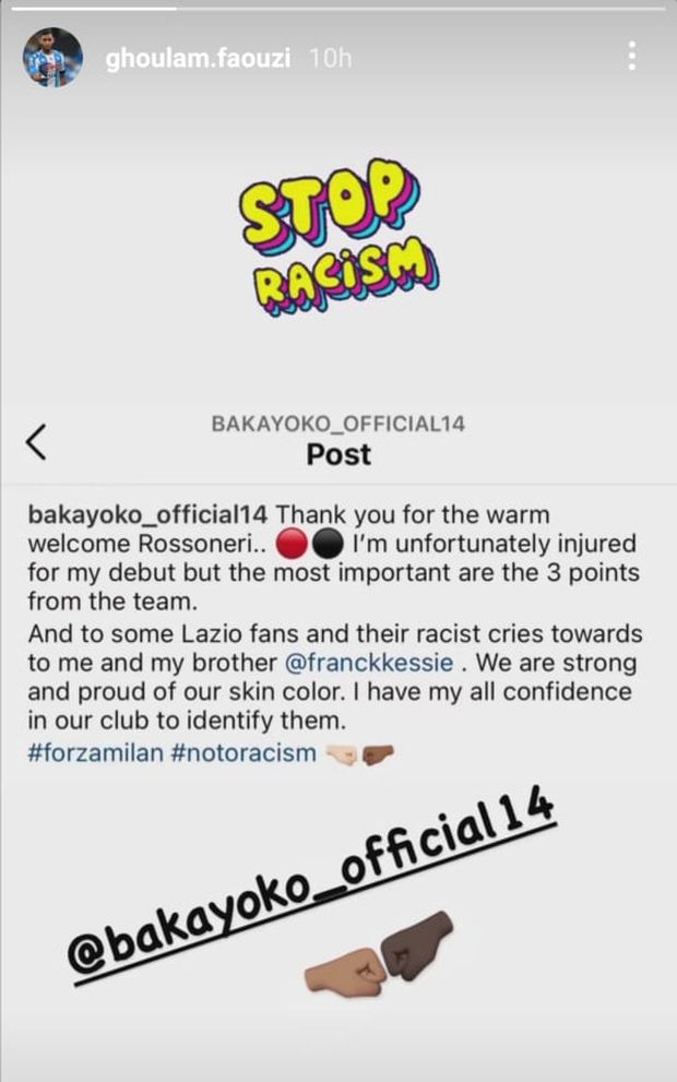 I due giocatori azzurri sono da sempre in prima linea contro il razzismo e anche in questo caso hanno voluto mostrare la loro vicinanza a Bakayoko giocatore con cui hanno condiviso diversi momenti importanti lo scorso anno. Kouibaly e Ghoulam hanno affidato ai propri profili Instagramil loro pensiero. Il razzismo è ancora presente nel mondo del calcio, ma l'orgoglio e la forza dei calciatori colpiti da questi cori odiosi sarà sempre la risposta migliore. E mentre certi essere urlano dagli spalti, loro continuano a correre dietro a quel pallone che da sempre è il loro migliore amico.