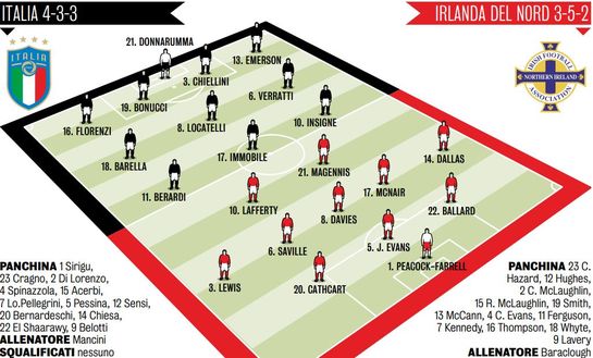 Italia-Irlanda del Nord, le probabili formazioni