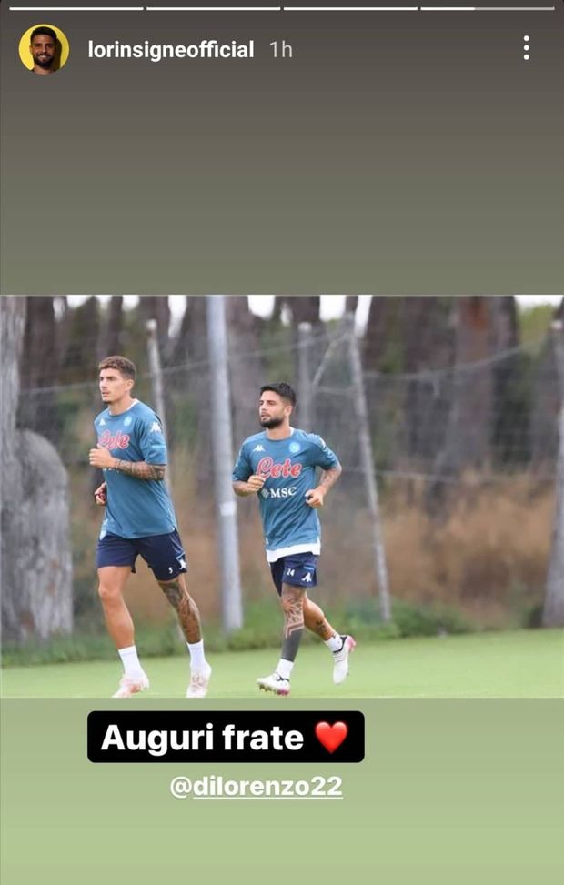 Tra i compagni del Napoli che gli hanno dedicato un pensiero Lorenzo Insigne. Il capitano ha pubblicato una storia Instagramche lo ritrae insieme a Di Lorenzo accompagnato da un semplice, ma significativo augurio: "Auguri Frate!" a sottolineare il bel legame tra i due. Che circa un mese fa hanno vissuto insieme una delle emozioni più belle della loro carriera.