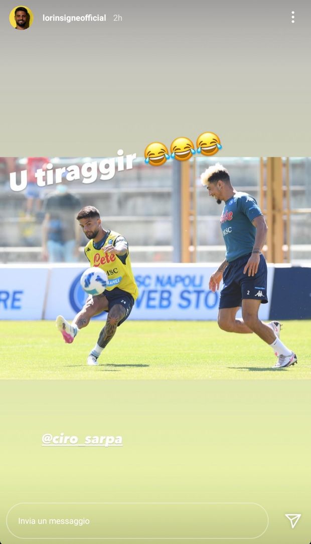 Durante il corso dell'allenamento odierno a Castel di Sangro, Lorenzo Insigne, capitano del Napoli, ha provato il suo marchio di fabbrica, il famoso "tiraggir", postando una foto sui social