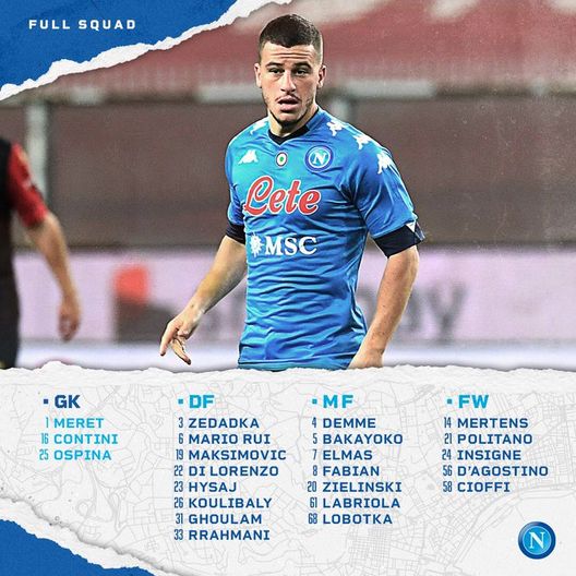 Difensori: Di Lorenzo, Ghoulam, Hysaj, Koulibaly, Maksimovic, Rrahmani, Mario Rui, Zedadka (maglia 3)